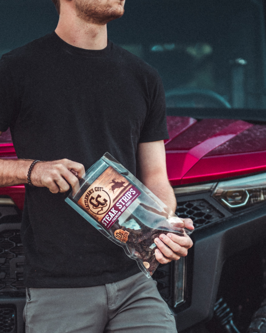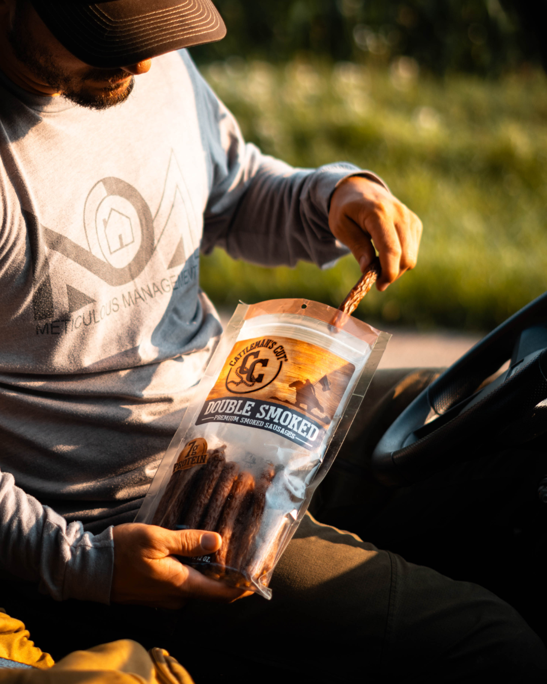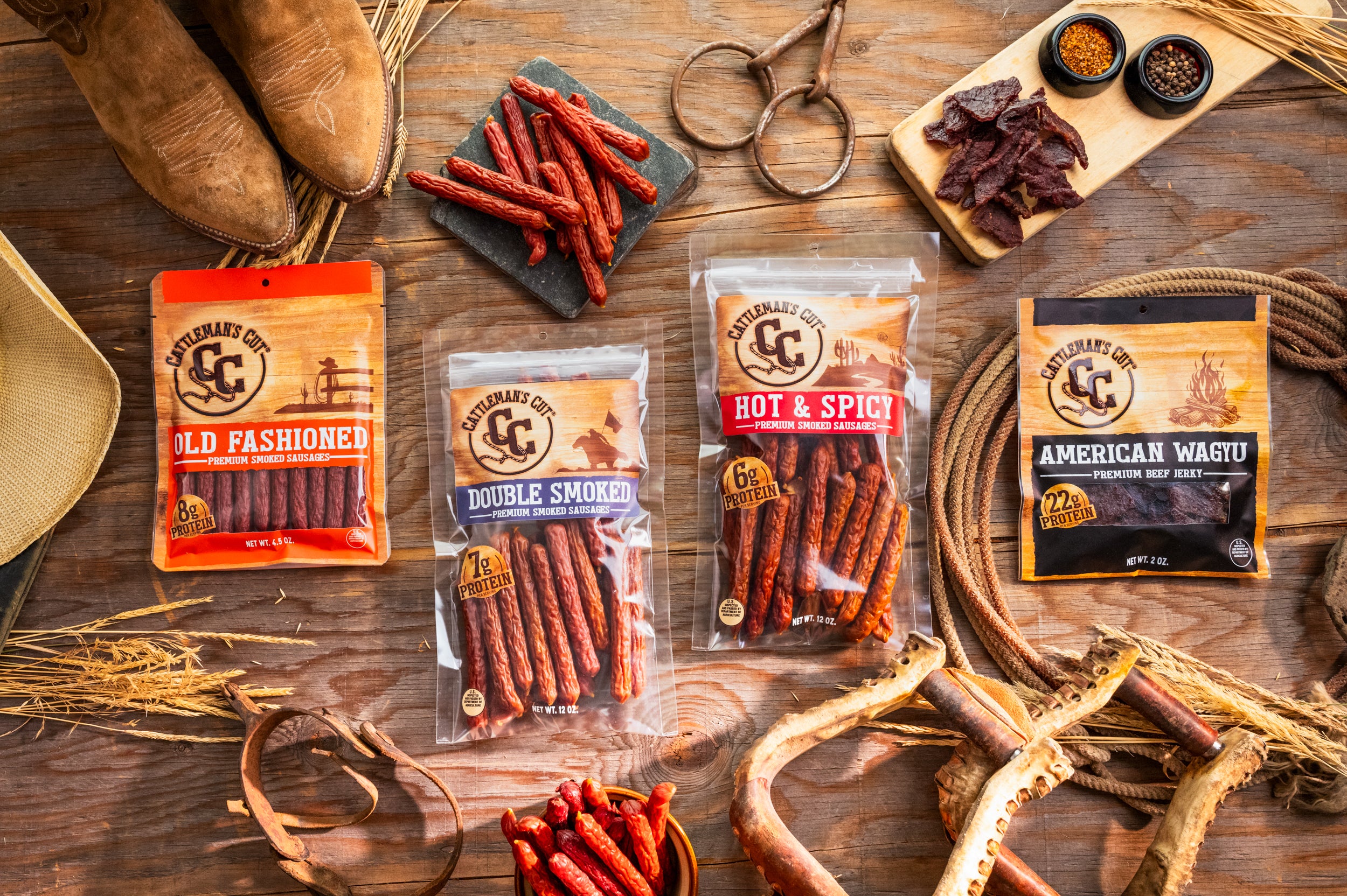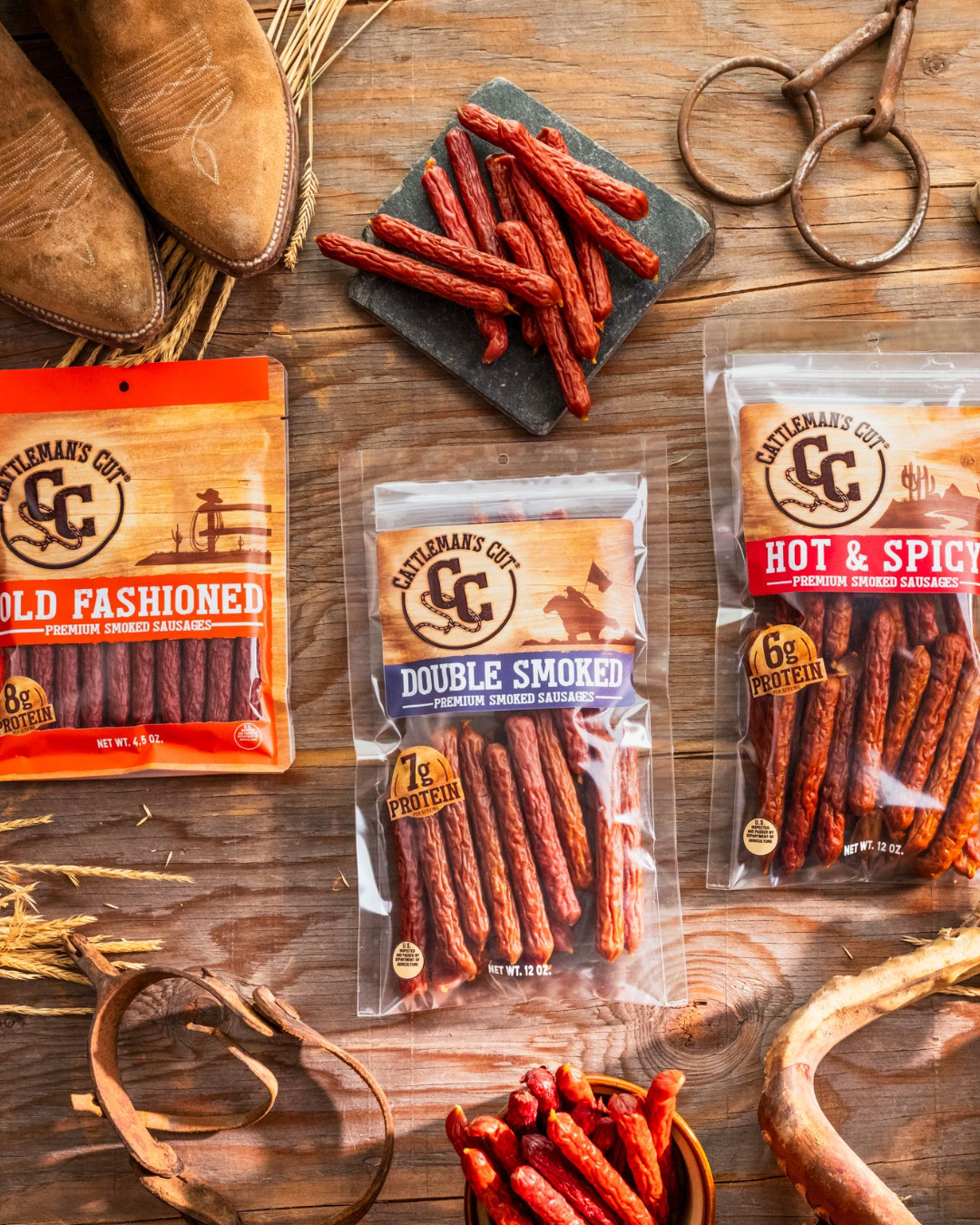 AT CATTLEMAN’S CUT, WE CARE ABOUT COUNTRY, FAMILY AND MAKING THE BEST DAMN MEAT SNACKS IN THE WORLD — FROM OUR LEGENDARY FLANK STEAK JERKY TO OUR ONE-OF-A-KIND DOUBLE SMOKED SAUSAGES. IF YOU LOVE SMALL TOWN CRAFT THAT ALWAYS LEADS TO BIG, BOLD AMERICAN FLAVOR, WELCOME HERE. WELCOME HOME.